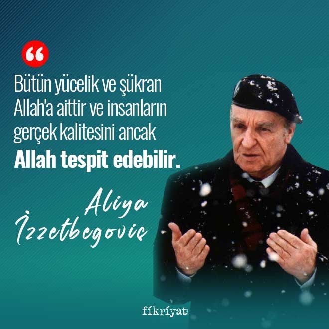 Allah'a tevekkülün, adanmışlığın en güzel örneklerinden biriydi, Aliya İzzetbegoviç. Bosna Hersek'in bağımsızlığı için verdiği mücadelede, insanlığa büyük bir umut oldu. Zorunlu bir varlık mücadelesinin önderi, aslında bir galibi bulunmayan o kanlı savaşın yegane kahramanıydı. Bosna Hersek başta olmak üzere dünya tarihinin en önemli isimlerinden biriydi.