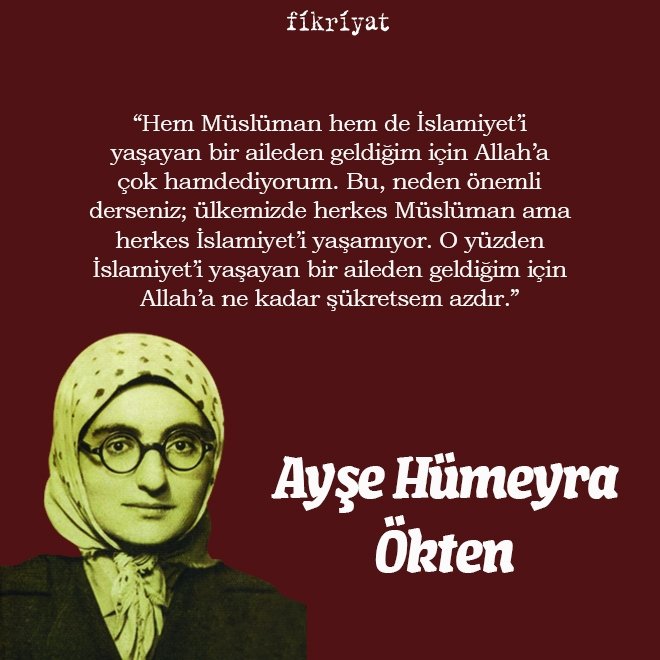 "Hem Müslüman hem de İslamiyet'i yaşayan bir aileden geldiğim için Allah'a çok hamdediyorum. Bu, neden önemli derseniz; ülkemizde herkes Müslüman ama herkes İslamiyet'i yaşamıyor. O yüzden İslamiyet'i yaşayan bir aileden geldiğim için Allah'a ne kadar şükretsem azdır."