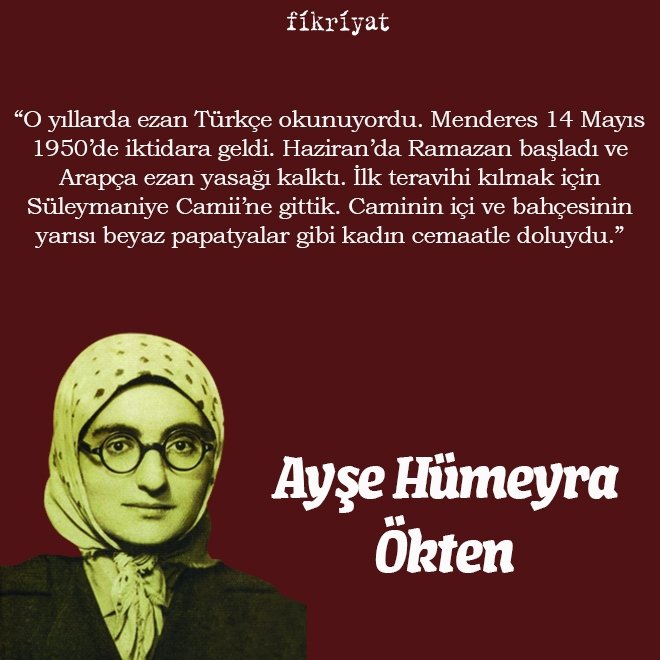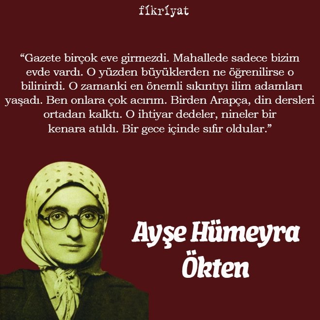 "Gazete birçok eve girmezdi. Mahallede sadece bizim evde vardı. O yüzden büyüklerden ne öğrenilirse o bilinirdi. O zamanki en önemli sıkıntıyı ilim adamları yaşadı. Ben onlara çok acırım. Birden Arapça, din dersleri ortadan kalktı. O ihtiyar dedeler, nineler bir kenara atıldı. Bir gece içinde sıfır oldular."