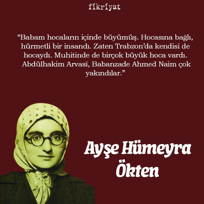 "Babam hocaların içinde büyümüş. Hocasına bağlı, hürmetli bir insandı. Zaten Trabzon'da kendisi de hocaydı. Muhitinde de birçok büyük hoca vardı. Abdülhakim Arvasî, Babanzade Ahmed Naim çok yakındılar."