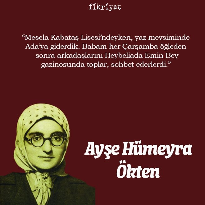 "Mesela Kabataş Lisesi'ndeyken, yaz mevsiminde Ada'ya giderdik. Babam her Çarşamba öğleden sonra arkadaşlarını Heybeliada Emin Bey gazinosunda toplar, sohbet ederlerdi."
