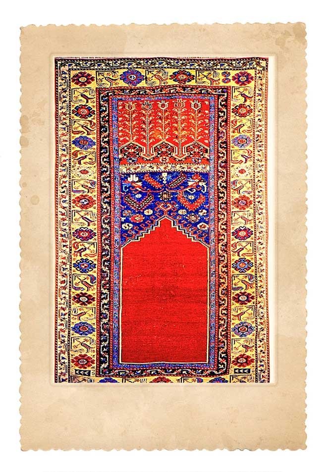 19. yüzyılın ilk yarısına ait bir Lâdik halı-seccadesi (Barbican Art Gallery)