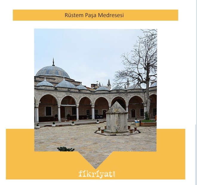 📚İstanbul Suriçi Cağaoğlu Divanyolu Alemdar Mahallesi'nde bulunan medrese, 1582 tarihinde 3. Murad dönemi Darüssade ağalarından Mehmet Ağa tarafından yaptırılmıştır. "Hoca Rüstem Medresesi" olarak da bilinir.