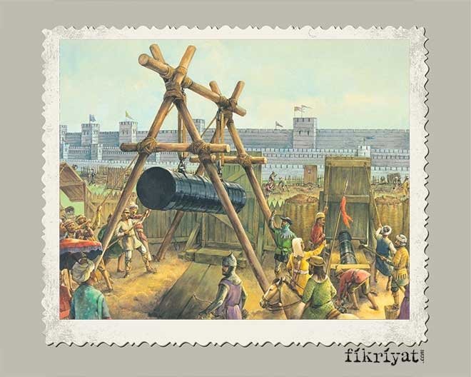 🔹 Haliç'te demirli bulunan Bizans donanmasına karşı da top kullanılması düşünülmüştü. Ancak Galata surları buna engel oluyordu. Yüksekten, görüş alanı olmadan atış yapabilecek yeni bir topa ihtiyaç vardı. Bu topun belirli bir hesaba göre konuşlandırılması ve atışını üst bir açı grubu ile yapması gerekiyordu. Fatih Sultan Mehmet, böyle bir topun krokisini ve balistik hesaplamalarını bizzat kendisi çizdi.