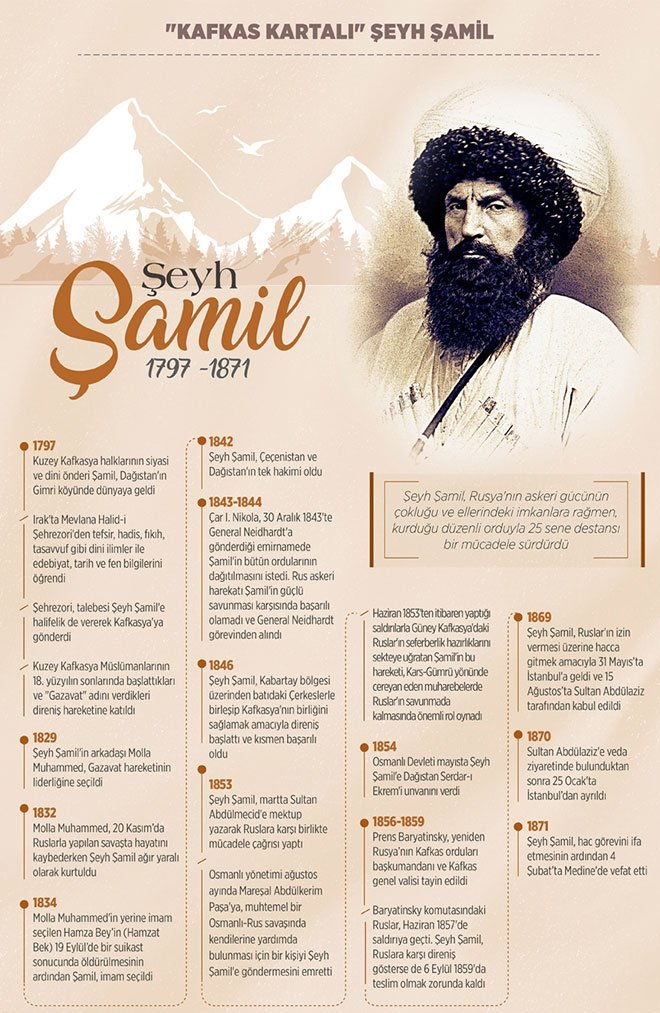 Rusların güçlü orduları karşısında unutulmaz bir mücadele veren Şeyh Şamil'in adı Rus işgaline karşı direnen Kafkas kavimlerinin hafızasına nakşedildi.