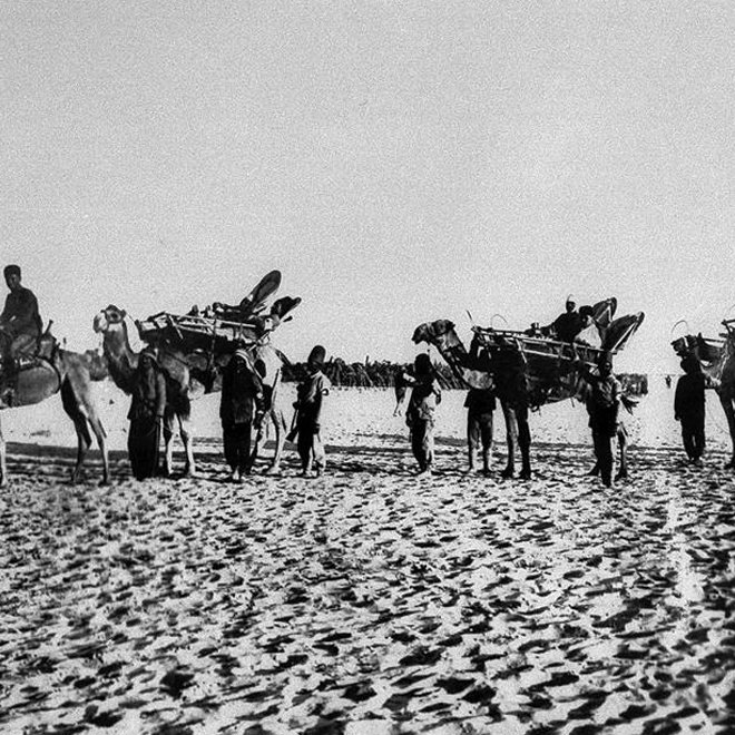 ↪ Bu fotoğrafta develerle gerçekleşen ikmal konvoyu çölde hareket halinde.