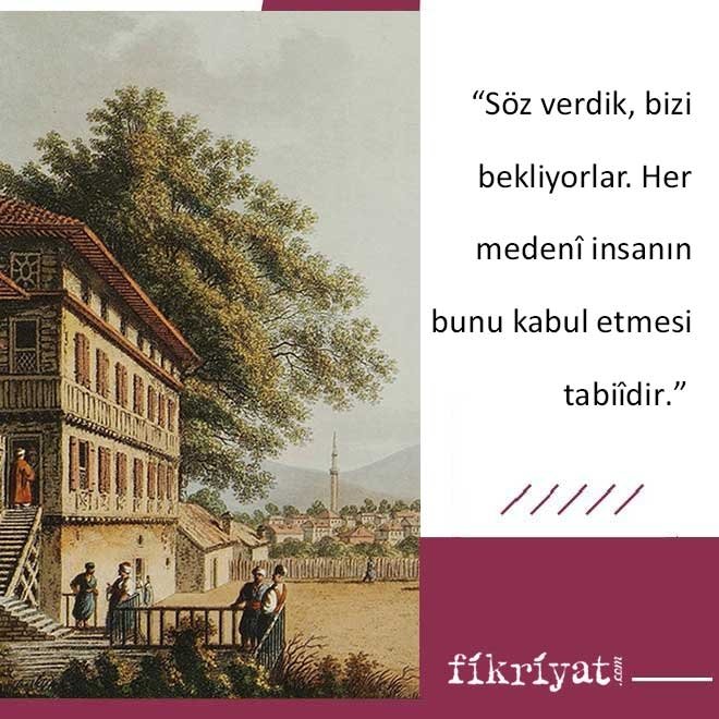 "Hayır, hiç de tuhaf değil. Söz verdik, bizi bekliyorlar. Her medenî insanın bunu kabul etmesi tabiîdir. Hele Hüseyin Kazım böyle şeyleri pekâlâ bilir, tabiî görür."