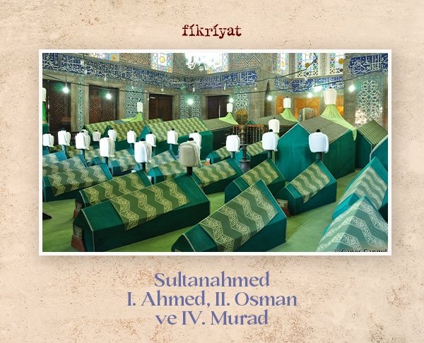 ◾ Camii'nin haziresinde bulunan türbede Sultan I. Ahmed ve iki oğlu mazlum padişah Sultan II. Osman, yasakları ve cesareti ile tarihe geçen IV. Murad medfun.
