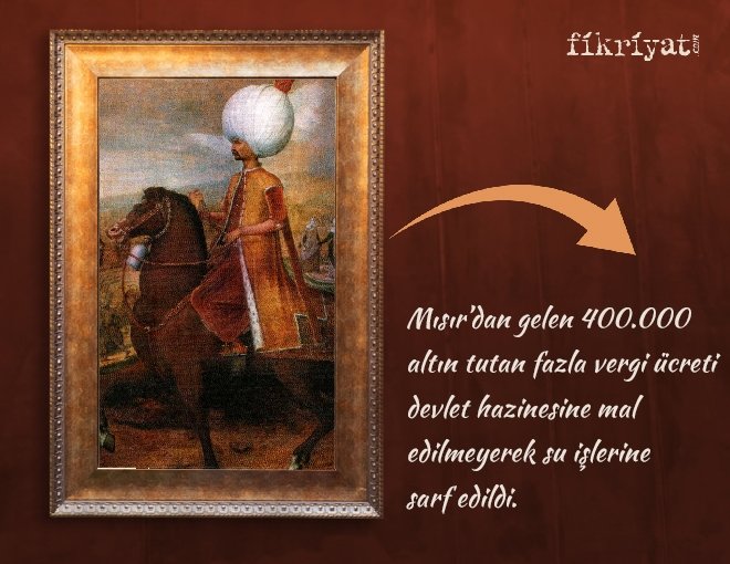 Kanuni Sultan Süleyman adaleti seven bir padişahtı. Mısır'dan gelen vergiyi haddinden fazla bulup, yaptırdığı araştırma sonunda halkın zulme uğradığını düşünmesi ve Mısır valisini değiştirmesi bunun açık kanıtıydı.
