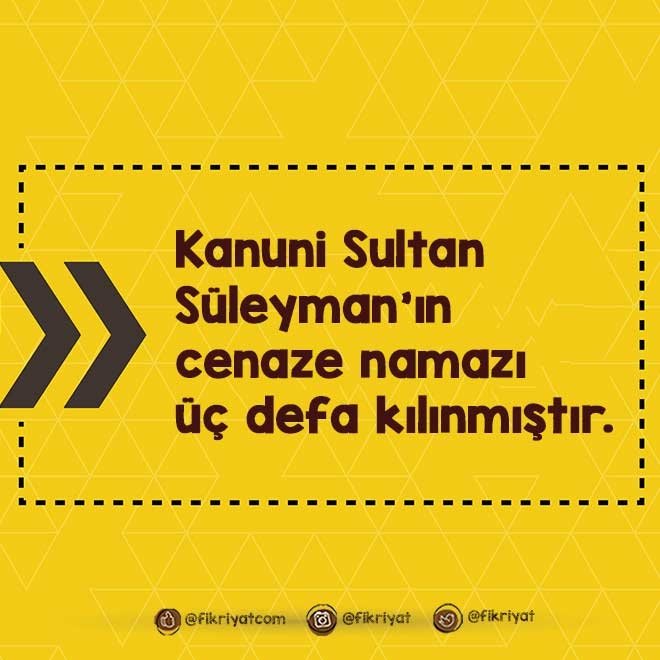 Kanuni Sultan Süleyman'ın cenaze namazı üç defa kılınmıştır. İlk namazı, Macaristan'da Sigetvar kalesi önündeki Türk ordugâhında otağı hümayunda, büyük padişahın ölümü askerden saklandığı için gizli olarak kılınmıştı; ikinci namaz, babasının cenazesini Belgrat'ta karşılayan yeni padişah İkinci Selim'in de iştiraki ile Belgrat sahrasında kılınmıştı; bu namaza 25. 000 kişi iştirak etmişti. Üçüncü namaz da İstanbul'da, Süleymaniye Cami'nin musalla taşı önünde kılındı. Bu namaza bütün İstanbul halkı iştirak etti. Gerilere doğru bütün sokaklar, Süleymaniye'den Fatih'e kadar cemaatle dolmuştu. Bu namazın 500 imamla kılındığı rivayet, olunur. Asrın büyük şairi Baki'nin de meşhur Sultan Süleyman Mersiyesi'ni, ilk defa bu cenaze töreninde okuduğu, şairi dinleyenlerin hıçkırıkları gökyüzünü tuttuğu söylenir.