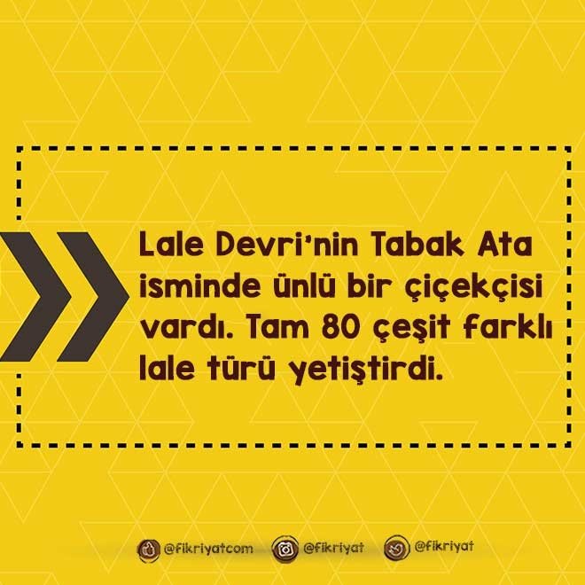 Lale Devri'nin Tabak Ata isminde ünlü bir çiçekçisi vardı. Tam 80 çeşit farklı lale türü yetiştirdi. Saray bahçelerine de lale soğanlarını o satardı. Tabak Ata fakir bir adamken lale sayesinde İstanbul'un sayılı zenginlerinden oldu.