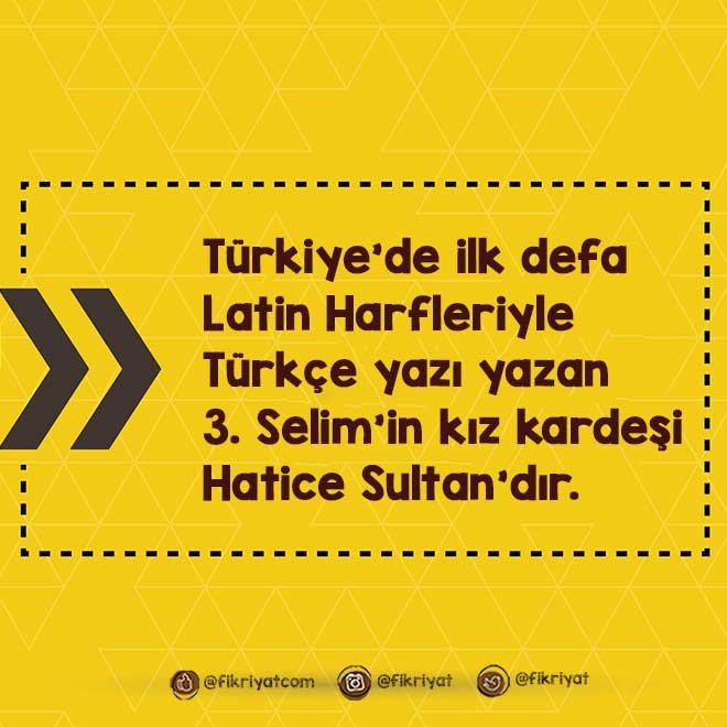 Türkiye'de ilk defa Latin harfleriyle Türkçe yazıyı, 3. Selim'in kız kardeşi Hatice Sultan yazmştır.
