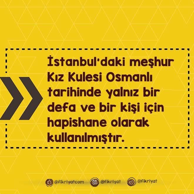 İstanbul'daki meşhur Kız Kulesi Osmanlı tarihinde yalnız bir defa ve bir kişi için hapishane olarak kullanılmıştır. Burada, on sekizinci asrın namlı vezirlerinden Hekimoğlu Ali Paşa hapsedilmiş ve oradan sürgüne gönderilmiştir.