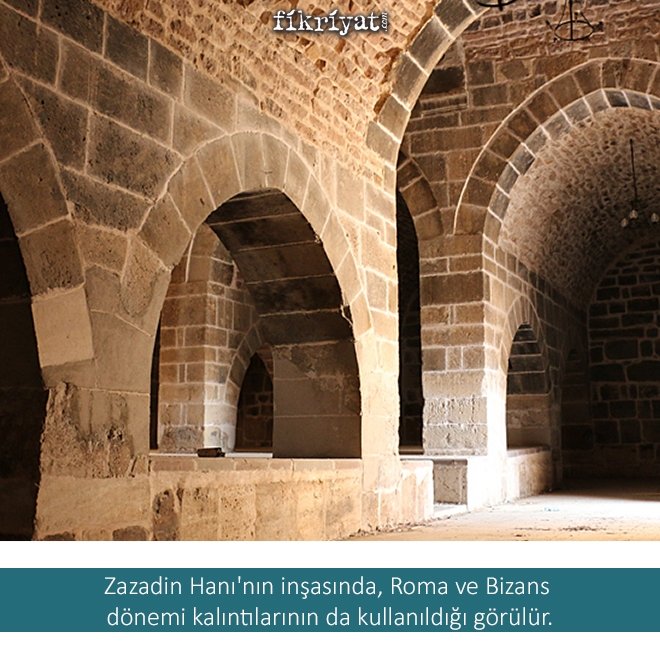 ▶ Zazadin Hanı'nın inşasının, Anadolu Selçuklu Sultanı I. Alaeddin Keykubat döneminde 1235'de başladığı, oğlu II. Gıyaseddin Keyhüsrev zamanında 1237'de bitirildiği tarihi kayıtlarda yer alır.
