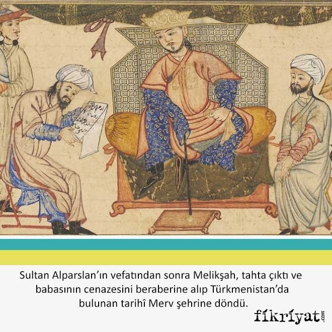 Sultan Alparslan'ın vefatından sonra Melikşah, tahta çıktı ve babasının cenazesini beraberine alıp Türkmenistan'da bulunan tarihî Merv şehrine döndü. Babasını da atalarının kabrine defnetti.
