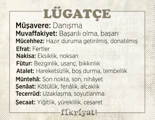 Çünkü evvelâ tevekkül gayet büyük bir seciyedir; saniyen bizler o seciyeye veda' edeli pek çok oldu! Şurasını da söyleyelim ki: Biz tevekkülün manayı hakikisini murat ediyoruz. O da meşru bir gayeye, meşru bir maksada doğru yürürken hiç fütur getirmemek; tevfîk-i ilâhînin tecellisinden emin olarak muttasıl ilerlemektir.