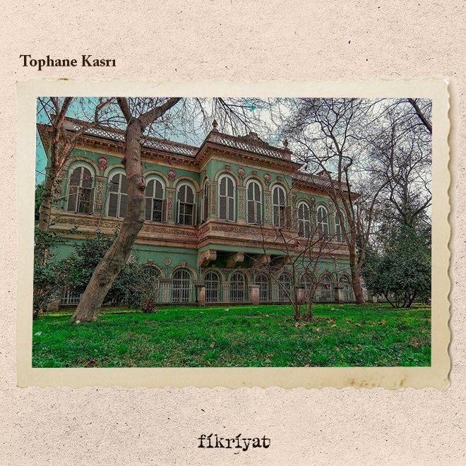 🔸 Tophane'nin simgelerinde biri olan Tophane Kasrı, Necatibey Caddesi üzerinde ve Nusretiye Camii'nin hemen yanında yer alır. Eski Tophane Meydanı'nın en önemli öğelerinden biri olan bu kasır günümüzde tarihi mahiyeti pek bilinmeyen bir yapıdır.