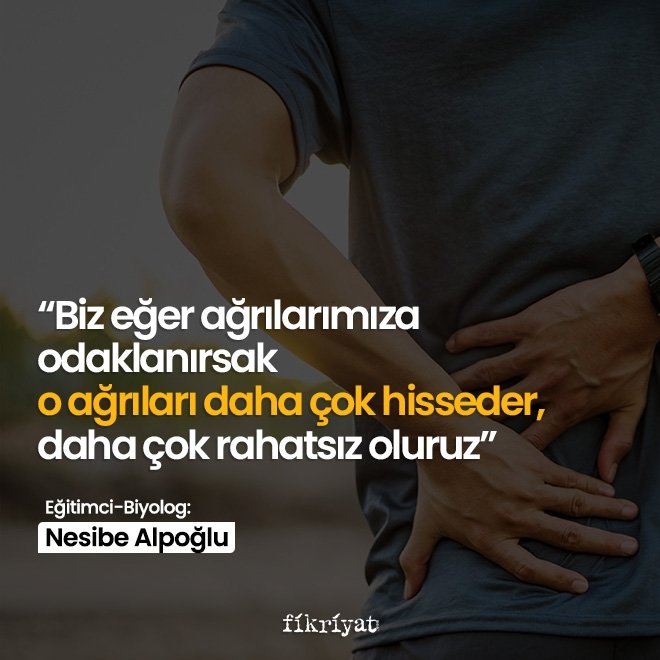 ◽ Bu öksürüyorum, hapşırıyorum, oram ağrıyor buram ağrıyor meselesiyle alakalıdır. Biz eğer ağrılarımıza odaklanırsak o ağrıları daha çok hisseder, daha çok bundan rahatsız oluruz. Ama bu ağrılara bir tedavi gözüyle bakarsak ateşim çıktı, vücutta savunma hücrelerim hareket halinde olsa gerek. Çok hapşuruyorum, yaramaz mikroplar artık burnumdan çıkıp gitmenizin vakti geldi. Siz içeride tutamayacağım kusura bakmayın. Belki küçük desteklerle kendimizi iyileştirmekten bahsediyorum. Aynı şekilde içinden çıkamadığımız ve kurtulamadığımız bir durum var. Biz çoğunlukla diyoruz ki hareket edin. En azından yürüyüş yapın. Spor yapamıyorsun, bir merkeze giremiyorsun veya bunu hiç canın istemeyecek. Çünkü psikolojimiz bozuk olduğunda vücut hep uyuma eğilimindedir. Kalkacak halim yok, kolumu bile kaldıramıyorum, bununla mı uğraşacağım deriz. Çünkü vücudun bana diyor ki uyu, uyursan unutursun. Ben unutsam mesele değişecek mi? Değişmeyecek ki. Aynı algı, aynı durum devam ediyor. O zaman ben uyumayacağım. Çünkü zihnimde bir yandan çalışmaya devam ediyor. O zaman ne yapacağım? Vücudumun hareket isteğini dışarıda sosyal hayatımda atlatacağım.