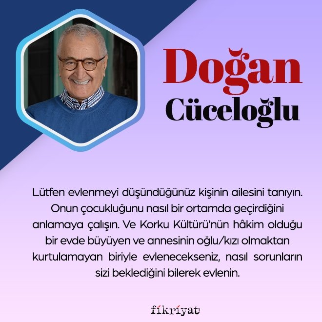 Lütfen evlenmeyi düşündüğünüz kişinin ailesini tanıyın. Onun çocukluğunu nasıl bir ortamda geçirdiğini anlamaya çalışın. Ve Korku Kültürü'nün hâkim olduğu bir evde büyüyen ve annesinin oğlu/kızı olmaktan kurtulamayan biriyle evlenecekseniz, nasıl sorunların sizi beklediğini bilerek evlenin.