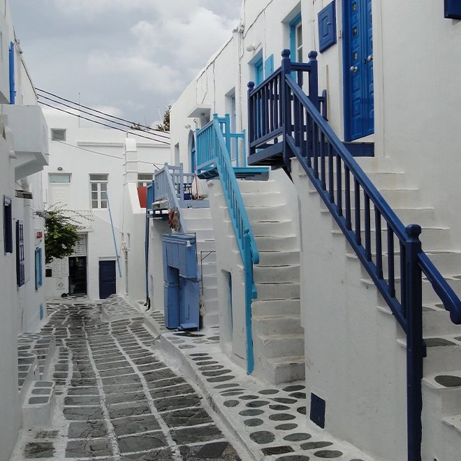 📌 Akdeniz havzasında inşa edilen evler beyaz ve mavi tonlarının hakim olduğu yapılardır. Renkler bir kültürü ve yaşam düzenini de yansıtmaları açısından mühimdir.