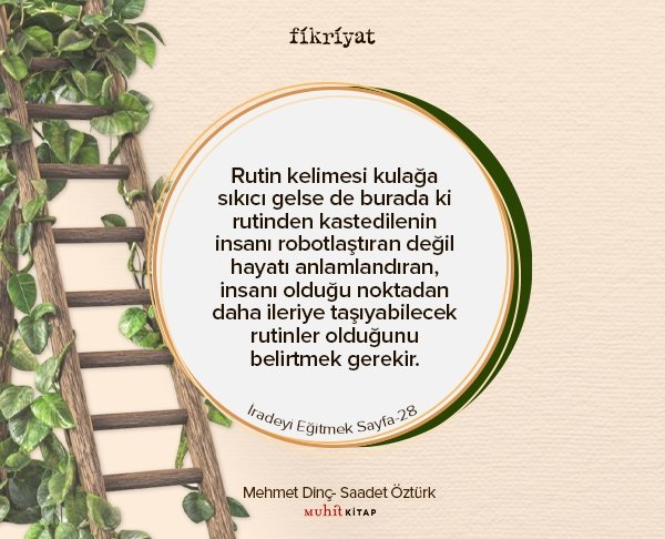 "Rutin kelimesi kulağa sıkıcı gelse de burada ki rutinden kastedilenin insanı robotlaştıran değil hayatı anlamlandıran, insanı olduğu noktadan daha ileriye taşıyabilecek rutinler olduğunu belirtmek gerekir."