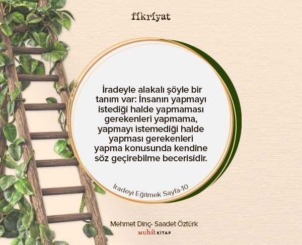 "İradeyle alakalı şöyle bir tanım var: İnsanın yapmayı istediği halde yapmaması gerekenleri yapmama, yapmayı istemediği halde yapması gerekenleri yapma konusunda kendine söz geçirebilme becerisidir."