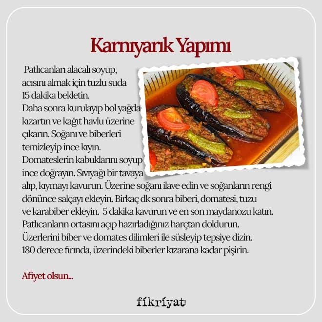 ◾ Patlıcanları alacalı soyup, acısını almak için tuzlu suda 15 dakika bekletin.