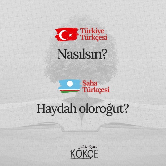 🔹 Kuzeydoğu Türk lehçeleri arasında Türkiye Türkçesine en uzak Saha lehçesidir. Saha Türkçesinde "nasılsın, iyi misin?" ifadelerini "Haydah oloroğut" soru kalıbı karşılamaktadır.