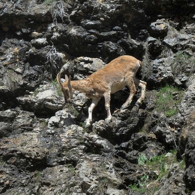 📍 Hayvanların zaman zaman aşağılara inmesi de ortaya birbirinden güzel fotoğraflar çıkarıyor. Nesli koruma altında ve avlanması yasak olan keçiler, Kırkmerdiven Vadisi'nde ot ve su ararken objektife yansıdı.
