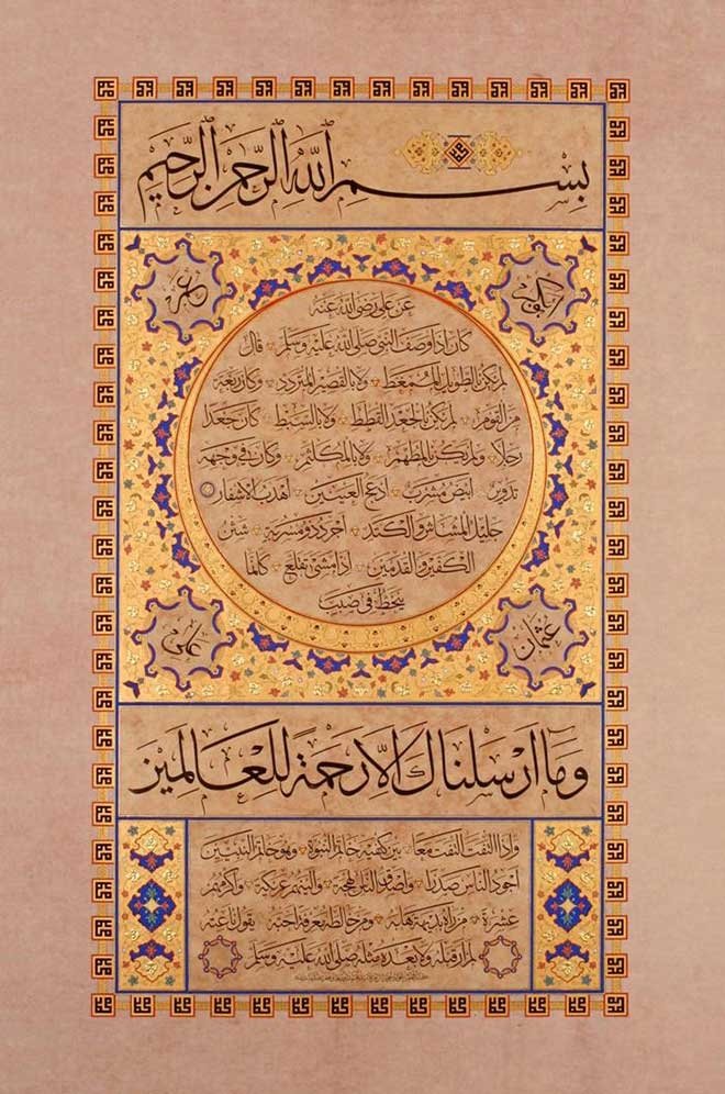 "Tabiatın her zerresinde estetik ve ahenk gizlidir. İnsan da kendi başına evrenin minyatür halidir. İnsanı en ulvi varlık olarak gören İslam, kendi sanatını insan merkezli olarak ortaya koymuş, ebedi bilgiye ulaşmada bir araç olarak görmüştür. Kur'an- Kerim'in ruhundan yansıyan estetik, kainatın yüreğinde hissedilir. İnsanı düşündürmeli, onu terbiye etmeli, bir bakıma insanı sonsuzluğa taşımalıdır."