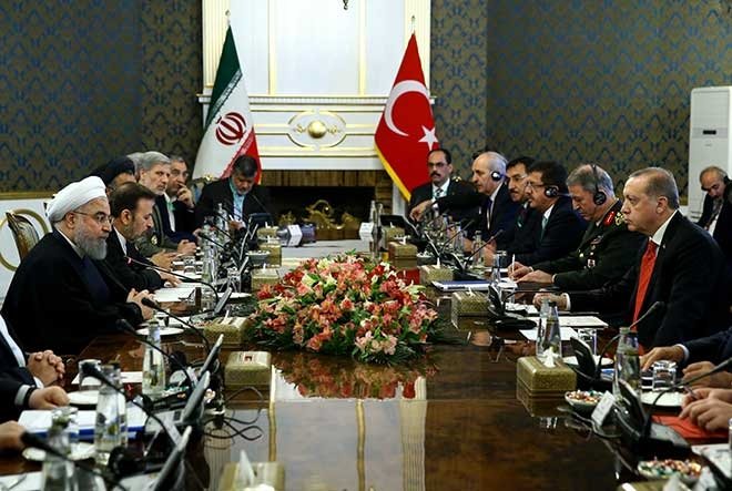 Cumhurbaşkanı Recep Tayyip Erdoğan, resmi temaslarda bulunmak üzere İran’a geldi. Erdoğan, İran’a gerçekleştireceği resmi ziyarette İran Cumhurbaşkanı Ruhani ile baş başa görüştü. İki lider görüşmenin ardından kameraların karşısına geçti. İşte bölgede yaşanan sıcak gelişmelerin ardından bir araya gelen Cumhurbaşkanı Erdoğan ve Ruhani’den yapılan açıklamadan öne çıkan notlar.