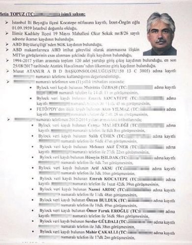 Metin Topuz'un, FETÖ şüphelisi 121 kişi ile yoğun görüşme trafiği tespit edildi.