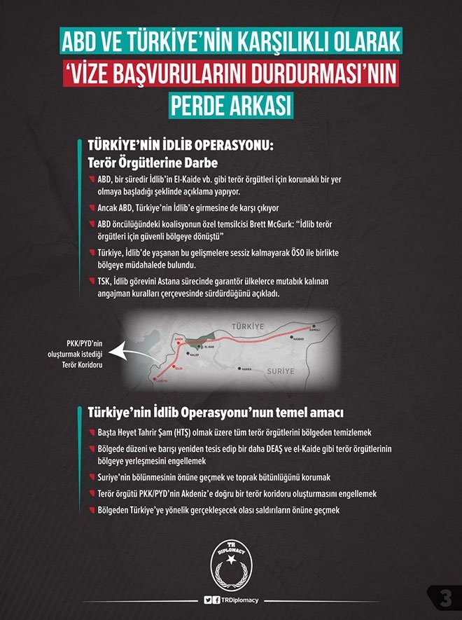 ABD, aldığı bu kararla Türkiye'nin darbeci FETÖ ile mücadele girişimlerini akamete uğratmak istiyor. Özellikle ABD Başkonsolosluğu'nda çalışan FETÖ irtibatlı kişilerin ilişki ağının ortaya çıkmasını istemiyor. İdlib operasyonunu desteklemiyor. Terör koridorunun açılmasını istiyor.