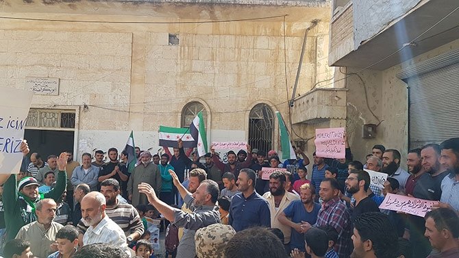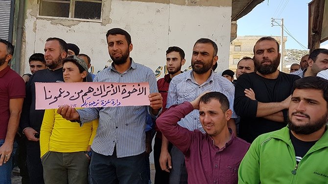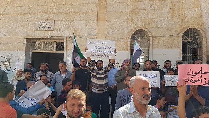 Halep'in batı kısmında, İdlib gerginliği azaltma bölgesindeki Daret İzze ilçesinde halk cuma namazının ardından bir araya gelerek, Türk askerlerinin İdlib intikalini destekledi.