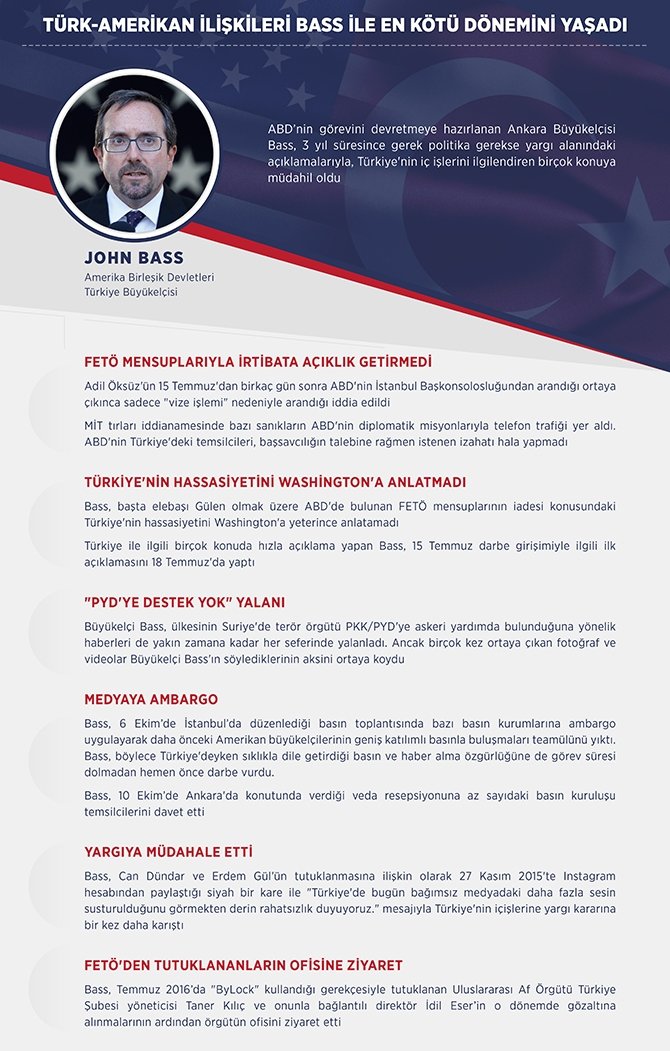 Ancak Büyükelçi Bass, Türkiye'ye yönelik ihaneti ve ihaneti gerçekleştiren başta elebaşı Fetullah Gülen olmak üzere ABD'de bulunan FETÖ mensuplarının iadesi konusundaki Türkiye'nin hassasiyetini Washington'a yeterince anlatamadı.