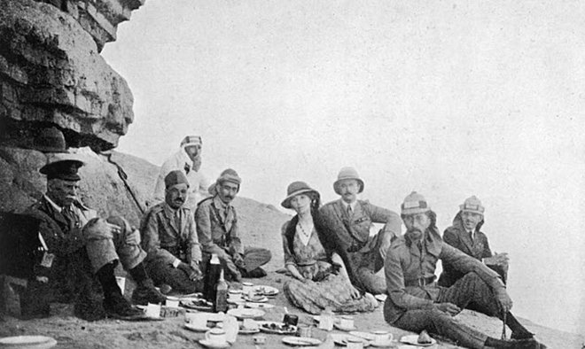 Günlüğüne "Bir daha kral yaratma işine katiyen bulaşmayacağım, sinirleri çok yıpratan bi iş" diye de yazan Bell, Suriye tahtından indirilmiş olan Faysal'ın Irak kralı yapılması için Winston Churchill'i ikna etti. Fotoğrafta birkaç seneye Irak tahtına oturtacağı Faysal'la pikinikte...