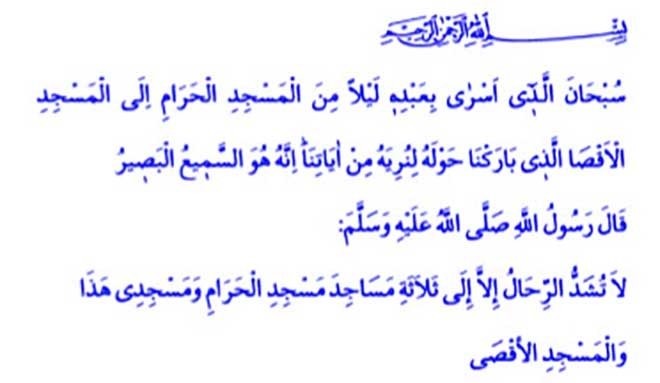 Okuduğum hadis-i şerifte ise Peygamberimiz (s.a.s) şöyle buyuruyor: "Üç mescit için ibadet maksadıyla yolculuğa çıkılabilir: Mescid-i Haram, Benim şu mescidim ve Mescid-i Aksa."[2]