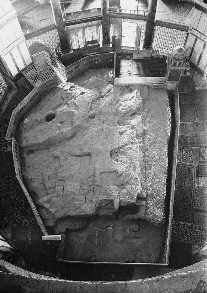 En geniş yeri 18 metre, en dar yeri ise 13,5 metre olan bu taş, Kubbet-üs Sahra'nın tam ortasında yer alır. İçine on bir basamak merdivenle inilebilen bu taşın iç kısmı, yaklaşık 1,5 metre yüksekliğinde boş bir mekândır.