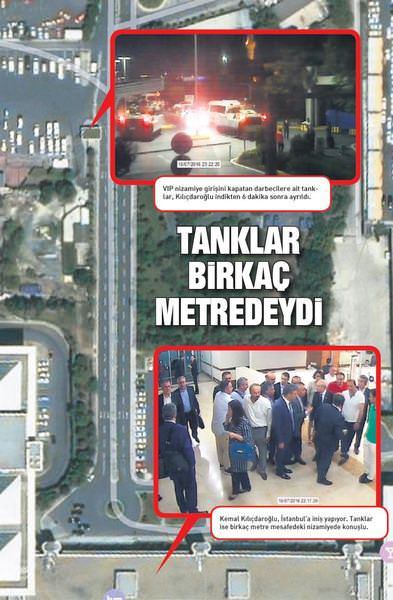 Sabah’ın haberine göre, 15 Temmuz’a ’kontrollü darbe’ diyerek büyük tepki çeken Kılıçdaroğlu’nun, darbe saatlerinde havalimanında birkaç metredeki cuntacı askerlerle karşılaşmamak için VIP’te beklediği, tanklar ayrıldıktan sonra da çıkış yaptığı görüntülerle ortaya çıktı.