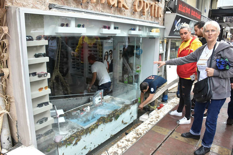 İzmir’in Tarihi Kemeraltı Çarşısı’nın girişindeki Anafartalar Caddesi’nde tıkanan rögarlar nedeniyle esnaf, iş yerlerini su basmaması için mücadele etti. İtfaiye ve İZSU ekiplerinden yardım isteyen esnaflar, ekipler gelmeyince, kendi imkanlarıyla yağmur suyunu engellemeye çalıştı. Esnaflar müşterilerinin suya batmadan ilerleyebilmesi için taburelerden köprü yaptı. Su dolu caddeden geçen vatandaşlar zor anlar yaşadı.