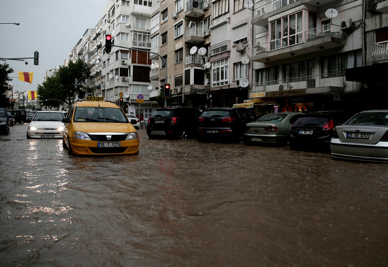 İzmir’de kuvvetli sağanak yağış etkili oldu.
