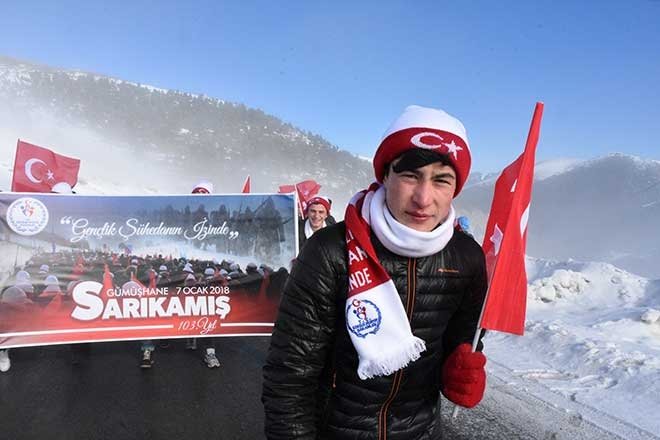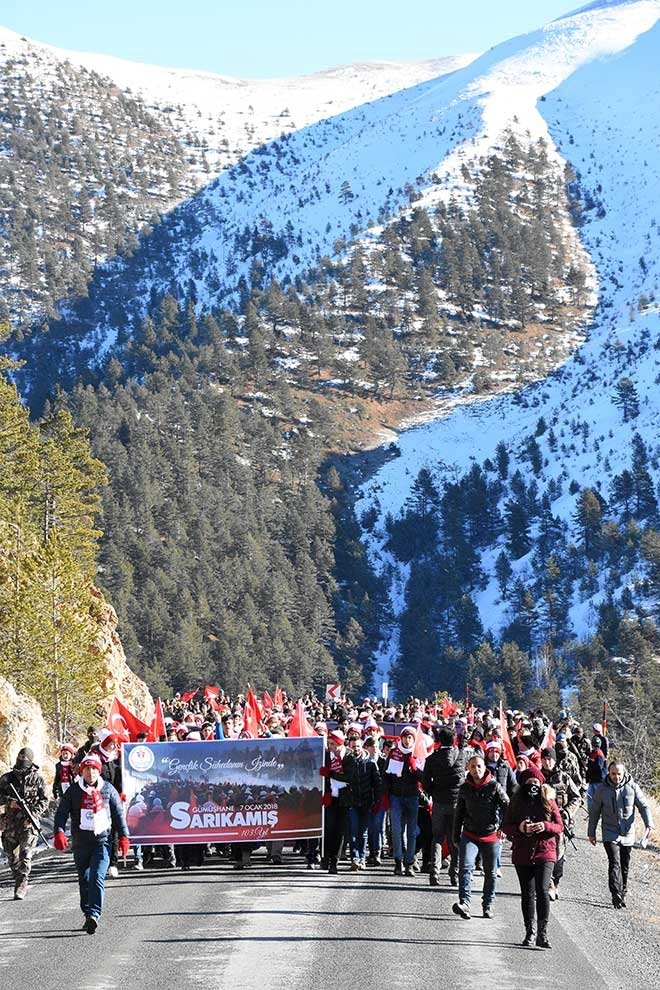 Kırmızı beyaz bere ve atkılarıyla yürüyen katılımcılar, yürüyüş boyunca Türk bayrağını omuzlarında taşıdı. Güzergahın bazı yerlerinde öğrenciler, Sarıkamış harekatını temsil eden oyunlar sundu.