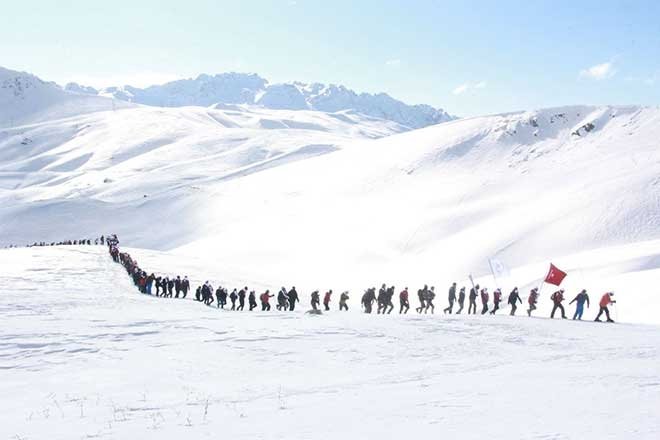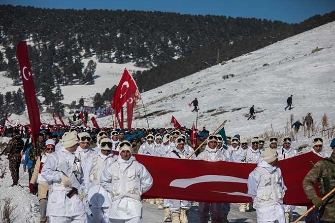 Kayseri'de, Sarıkamış Harekatının 103'üncü yılı dolayısıyla Erciyes Dağı'nda anma yürüyüşü düzenlendi.