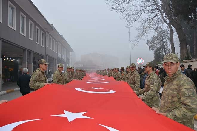 Harekatın 103. yılı anısına 103 metre uzunluğundaki Türk bayrağını taşıyan grup, "Şehitler ölmez, vatan bölünmez" ve "Vatan canım sana feda" sloganları atarak Aksaray Şehitliği'ne kadar yürüdü.