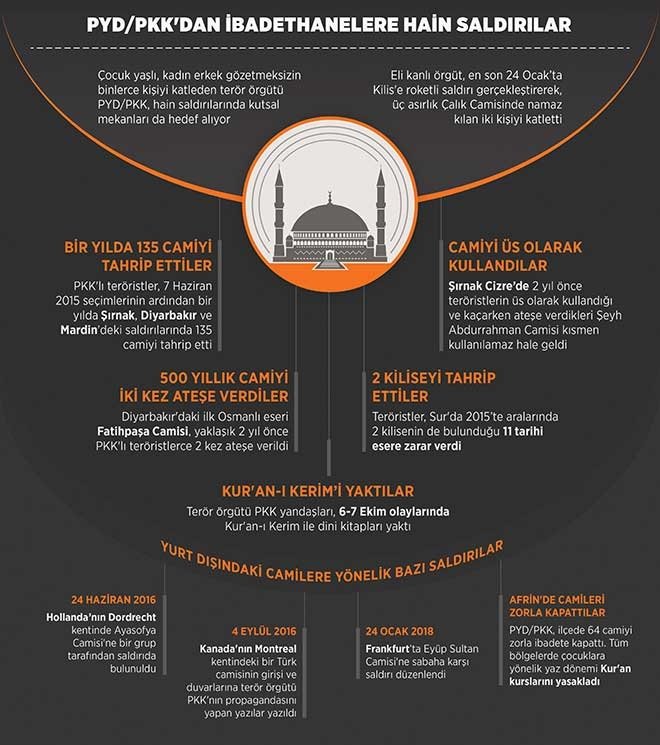 Afrin'deyken örgütün baskıları nedeniyle zaman zaman yer değiştirmek zorunda kaldığına dikkati çeken Çilo, "Şeyh Hadid köyünde namaz sırasında PKK camiyi bastı. Ayakkabılarla içeri girdiler. Çocukları evlerine gönderdiler ve Kur'an-ı Kerim'in cüzlerini yırttılar." dedi.