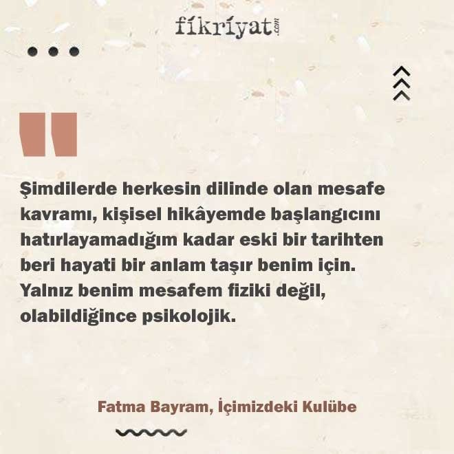 Şimdilerde herkesin dilinde olan mesafe kavramı, kişisel hikâyemde başlangıcını hatırlayamadığım kadar eski bir tarihten beri hayati bir anlam taşır benim için. Yalnız benim mesafem fiziki değil, olabildiğince psikolojik. Olabildiğince diyorum, çünkü –aksilik bu ya- bir yandan kişisel alana bunca değer verirken diğer taraftan da dışa dönük ve konuşkan bir yapım var. Eskiden beri bütün olayların ve envai çeşit insanın tam ortasındayım yani.