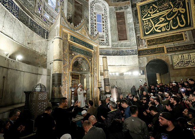 İstanbul'un fethinin 570. yıl dönümü nedeniyle Ayasofya Camisi'nde sabah namazında kutlama programı gerçekleştirildi.