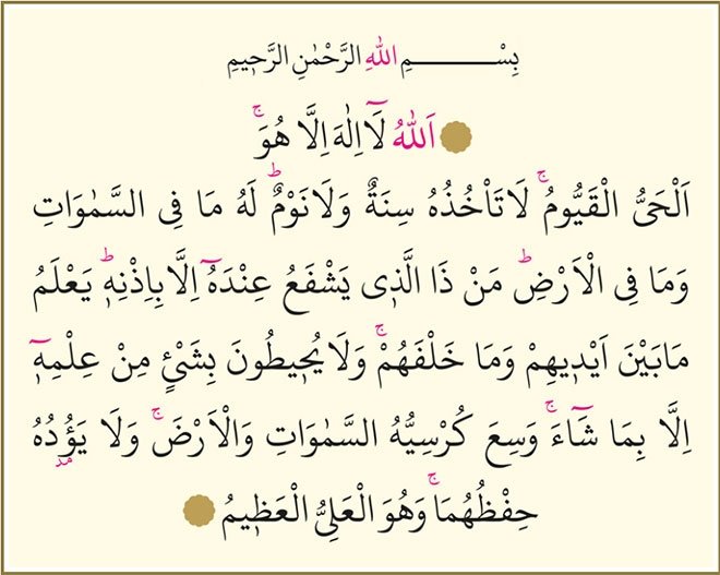 Ayet-el Kürsi de Bakara Suresi'nin 255'inci Ayet-i Kerimesidir.