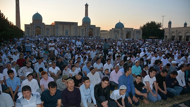Özbekistan'da Ramazan Bayramı dolayısıyla sabah erken saatlerde ülkedeki tüm cami ve mescitlerde bayram namazı kılındı.