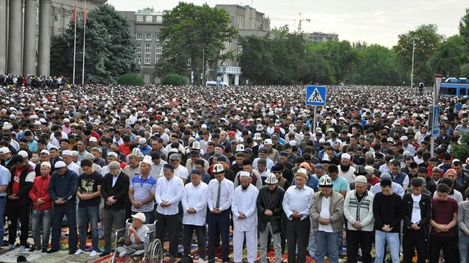 Kırgızistan'da yaklaşık 3 bin camide Ramazan Bayramı namazı kılındı.